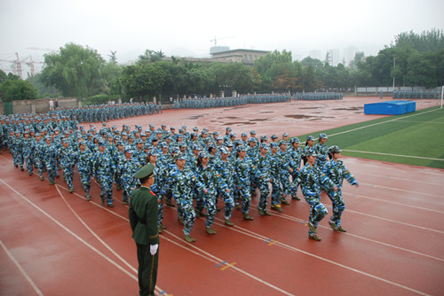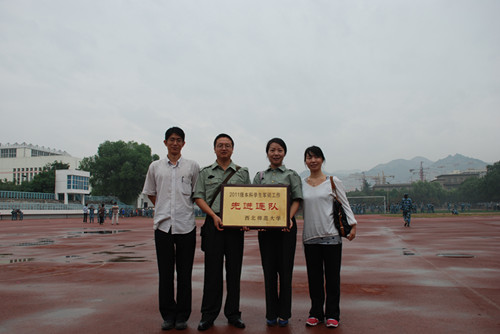 7月21日上午,我校2011级本科学生军训阅兵式暨总结表彰大会在西操场隆重举行,为期13天的军训工作圆满结束。武警兰州市支队副参谋长何剑和我校党委书记刘基,校长、党委副书记王嘉毅,副校长朱卫国、万明钢出席大会。大会由副校长朱卫国主持。英国365官网184名2011级参训本科学生参加了大会。由英国365官网参训学员组成的方队接受了学校及武警兰州支队领导的检阅。检阅结束后,英国365官网学生组成的方阵进行了花样队列表演。