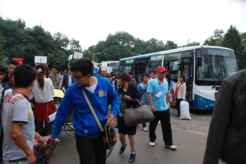 9月3日早6:30,学院所有参加迎新工作的老师、同学全部到位,热情迎接来自全国各地的2013级新同学。学院经过周密的部署,做好了各项准备工作。报到过程中,工作组、志愿者轮流上岗,责任到人,全天候服务新同学。学校中心广场迎接,教学10号楼前寄存行李,西苑餐厅报到注册,其他部门工作点办理报到手续,工作人员一路相随,耐心讲解,让新生和家长倍感温暖。