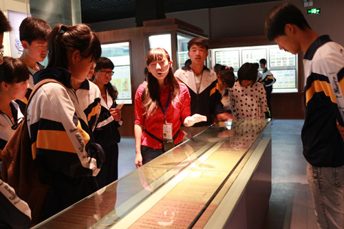 同学们在志愿者的引导下,兴致勃勃地参观了校史馆、图书馆和教学楼并走进大学课堂,体验了大学生活。同学们在感叹大学校园宏伟壮丽的同时,也对大学生活充满了好奇和向往。志愿者们也尽心尽责,耐心地回答同学们提出的问题。在参观图书馆时,同学们还在图书管理人员的帮助下,查找自己喜爱的书籍。
