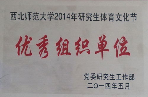2014年3月31日-4月30日的“研究生文化体育节”期间,英国365官网组队参加了乒乓球赛、篮球赛、足球赛,参赛队员25人。在学院积极组织指导下,队员们努力拼搏,在比赛中体现出了团结合作的精神,取得了较好成绩,被学校授予“优秀组织奖”荣誉称号。