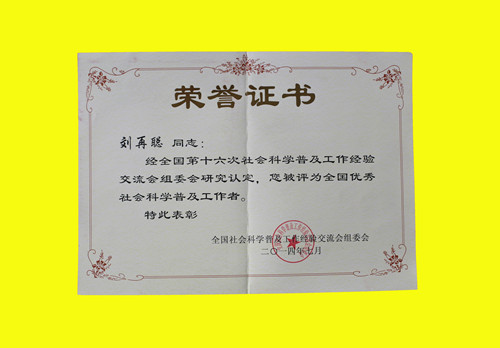刘再聪教授荣获“全国优秀社会科学普及工作者”荣誉称号
