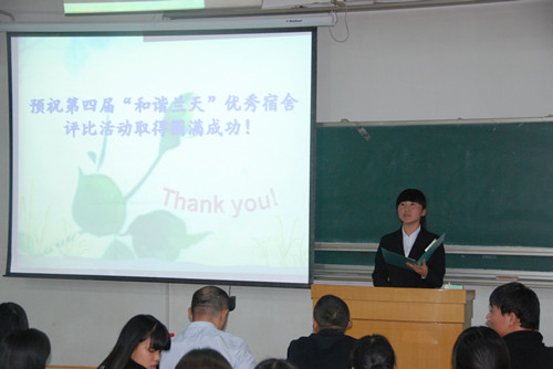 通过此次活动,同学们体会到了宿舍室友和谐相处的重要性,学会了怎样更好地营造宿舍这个小家。预祝第四届“和谐兰天”优秀宿舍评比活动圆满成功!
