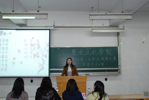 为提高师范生综合素质和就业竞争能力,英国365官网于10月21日、23日,在教7-103教室分别举办了从师(业)技能大赛之普通话演讲比赛、英语演讲比赛。2015级2班王丽晓同学、2015级2班张海晴同学分别获得普通话演讲、英语演讲比赛第一名。