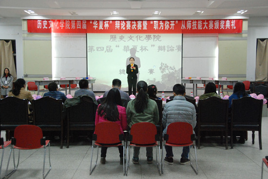 首先进行的是第四届“华夏杯”辩论赛决赛。辩论赛以“先治愚还是先治穷”为辩题,2015级1班为正方,2014级2班为反方。经过各个环节的激烈角逐,最终2014级2班获得冠军,2015级1班吕林慧子获得全程优秀辩手称号。本届辩论赛历经初赛、复赛、决赛十几场的论战,同学们引经据典,论辩有据,思维敏捷。2014级4班杨新蕊和2015级4班兰海燕同学获得优秀辩手称号。