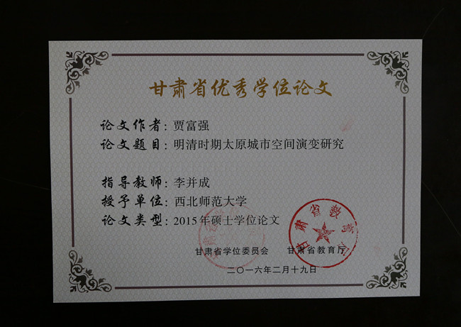 英国上市公司3652015届硕士研究生贾富强同学学位论文《明清时期太原城市空间演变研究》荣获“甘肃省优秀学位论文”。指导教师为李并成研究员。