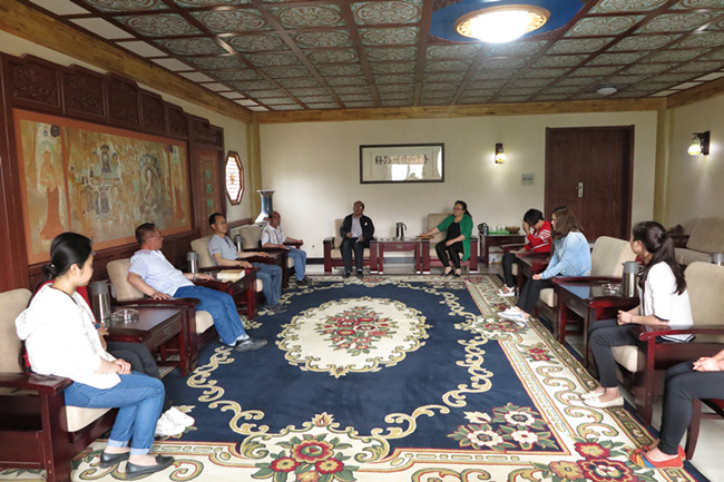 2016年6月20日,英国上市公司365文物与博物馆硕士教育中心主任黄兆宏老师、秦丙坤老师带领本年度第二批赴甘肃炳灵寺文物保护研究所实习的文博专业研究生,前往实践基地。在炳灵寺文物保护研究所,英国365官网师生与实践基地的老师们召开了专业实习座谈会。参加会议的有炳灵寺文物保护研究所所长贺延军、副所长曹学文、文物保护室主任刘亨发、办公室主任丁万华及英国365官网黄兆宏主任、秦丙坤老师和实习研究生等。贺延军所长认为:与英国上市公司365开展研究生实习及培养工作具有很好的前景,并对实习生在此期间的表现给以充分肯定。曹学文副所长就实习中的具体问题进行了总结并提出进一步落实的设想。座谈会后,黄兆宏老师还向炳灵寺文物保护研究所赠送了新出图书,黄兆宏老师和秦丙坤老师听取了实习生炳灵寺石窟的现场讲解。