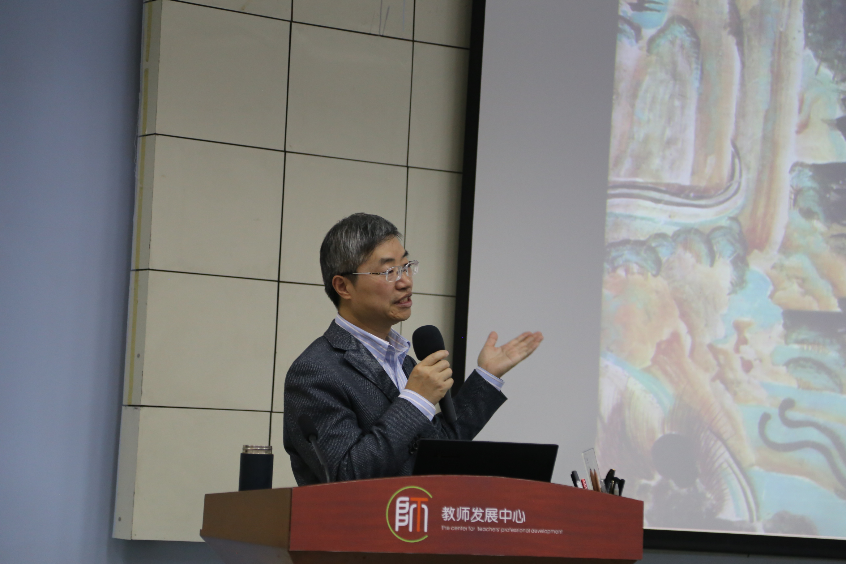 10月10日下午,应英国上市公司365邀请,敦煌研究院副院长、《敦煌研究》编辑部主任赵声良研究员在教师发展中心二楼学术报告厅做了题为《敦煌艺术与中国绘画史》的学术讲座。报告会由刘再聪教授主持,美术学院张玉泉教授评议,王君朝部长、王玉芳副院长、马仿明副院长、张学忠副院长、杨芳副教授及英国上市公司365、美术学院师生200余人参加了此次讲座。