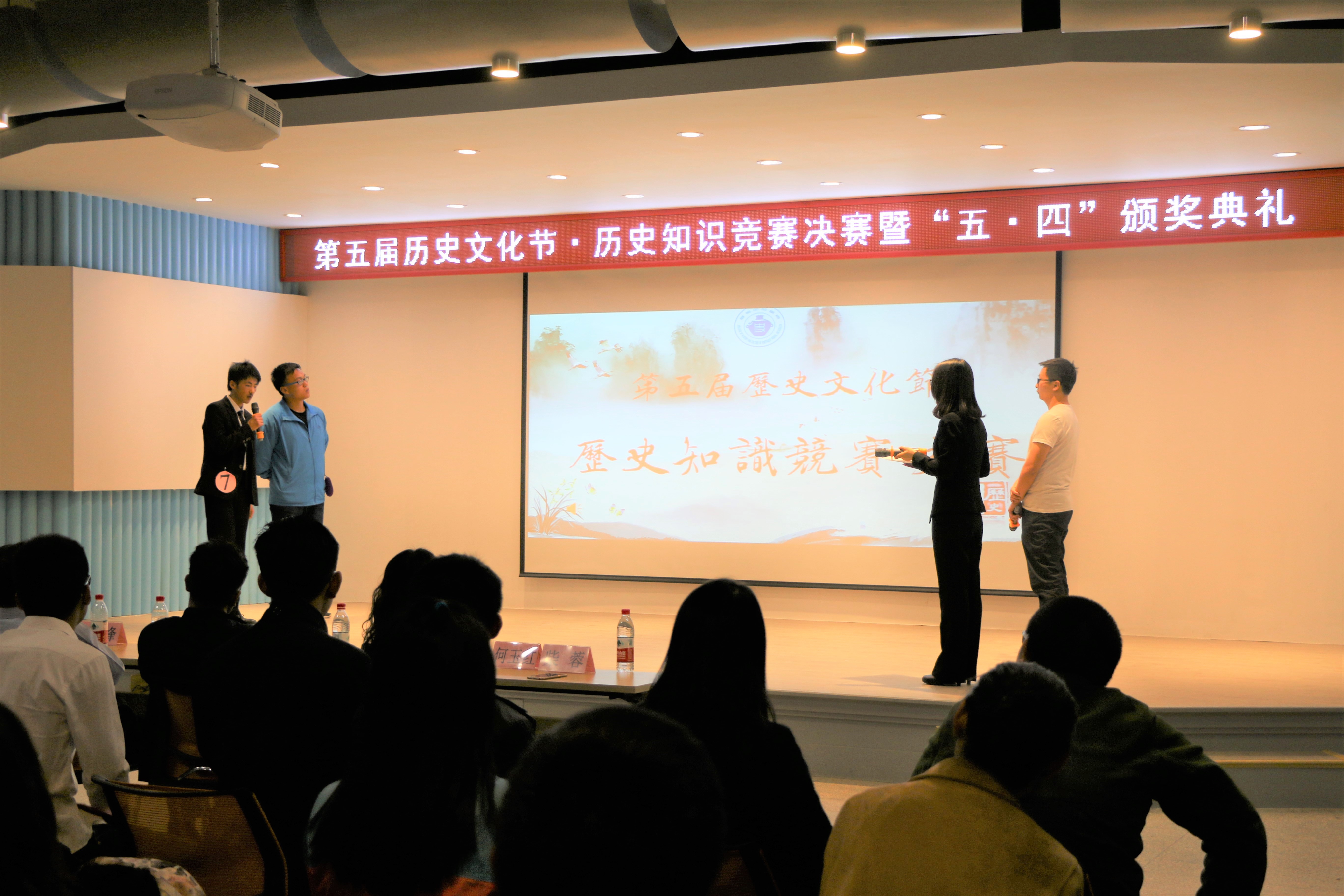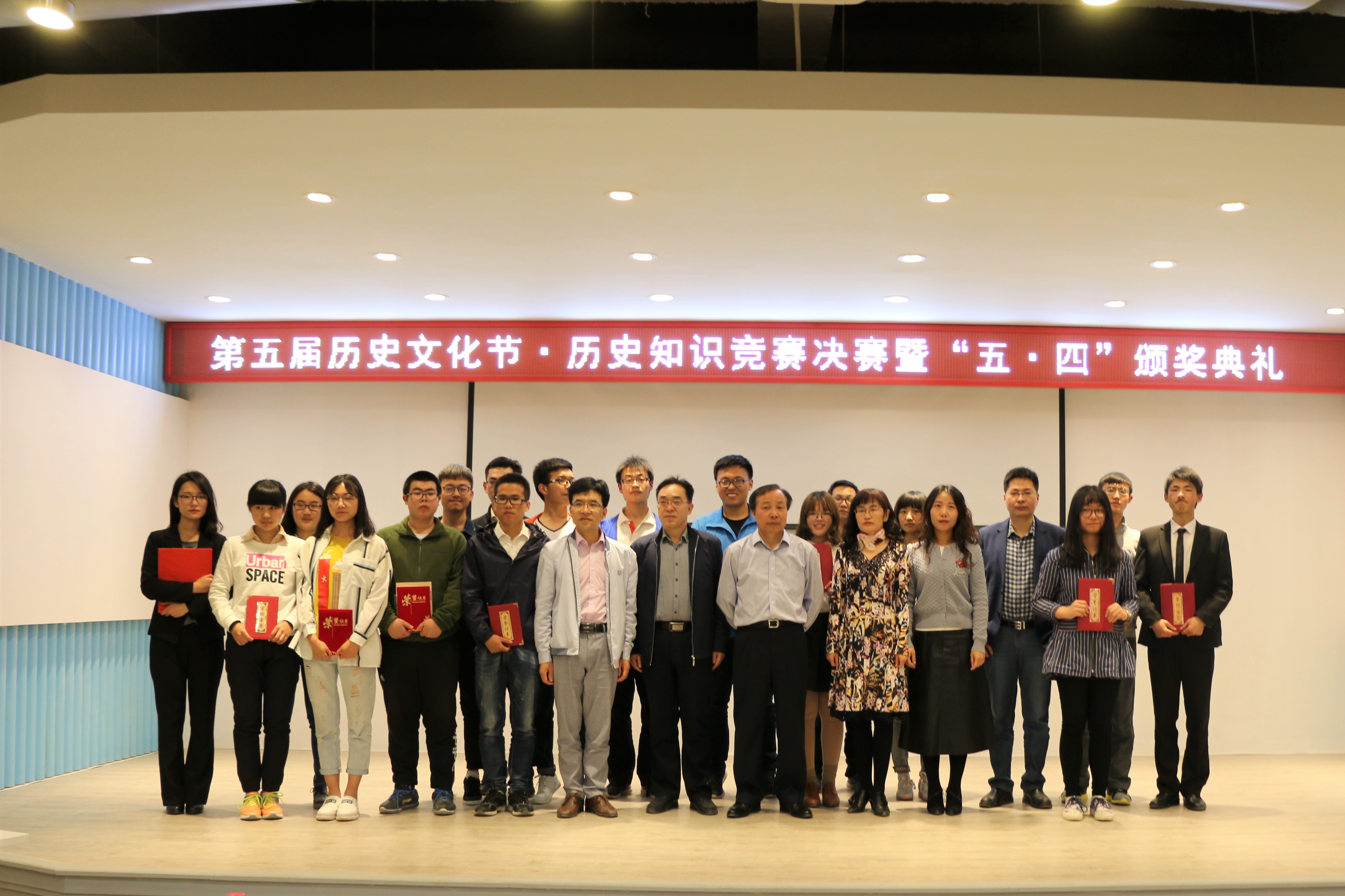 5月8日晚英国365官网在大学生发展中心举行了第五届“历史知识竞赛”决赛暨“五•四”表彰大会。学院党委书记李迎新老师、院长杨鹏飞老师、副院长何玉红老师,副书记柴蓉老师以及英国365官网郑峰老师、吕海军老师、李晓英老师等一百余名师生参加了当晚的活动。