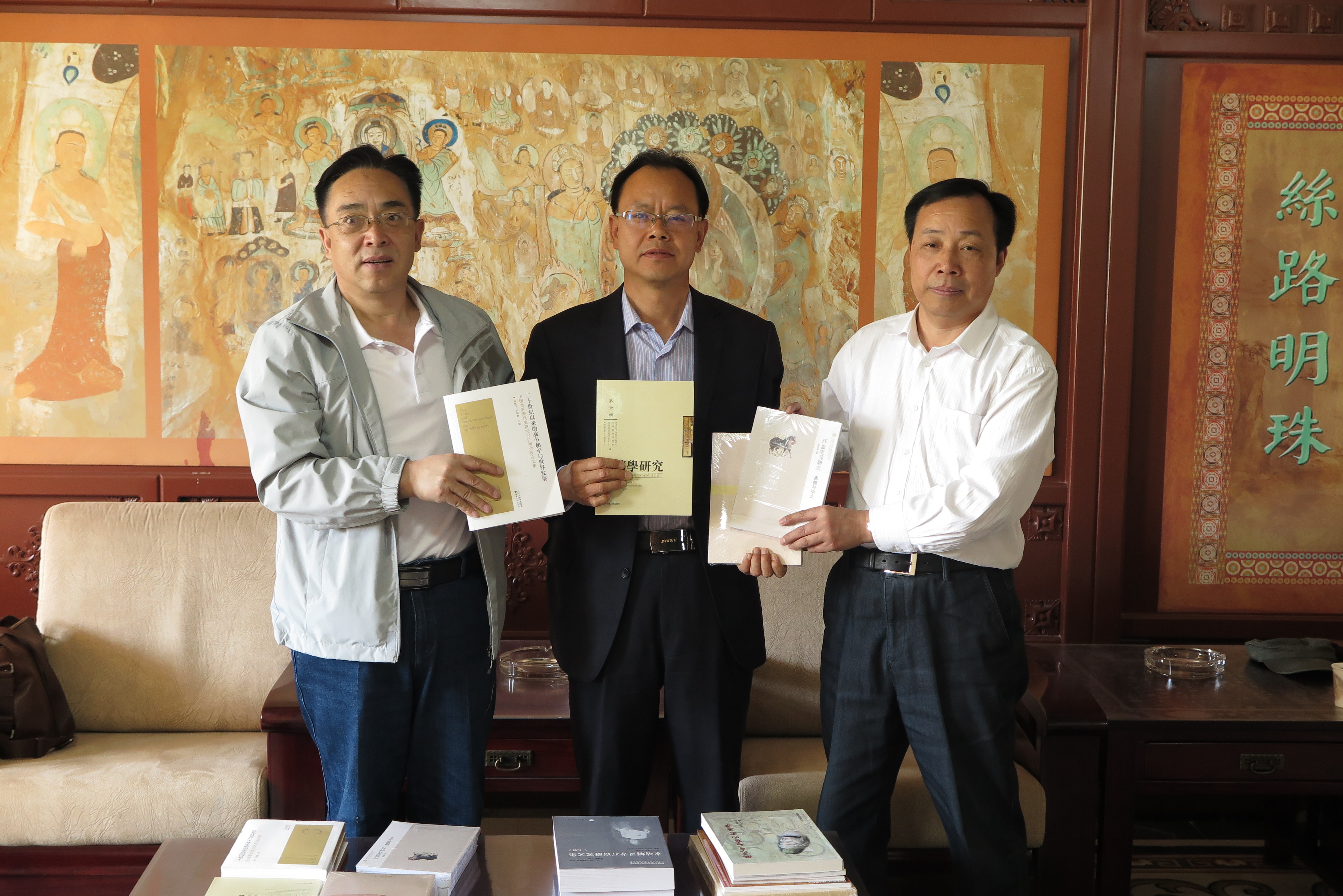 座谈会上,双方开展了图书资料互赠活动,学院向实习基地捐赠了《辽夏金的女性社会群体研究》、《简牍学研究》、《二十世纪以来的战争与和平与世界发展》、《近现代西北社会研究——发展与变革》等书籍。实习基地向学院回赠了《炳灵寺石窟上寺》、《炳灵寺石窟研究论文集》、《中国石窟艺术——炳灵寺》、《炳灵寺一六九窟》、《炳灵寺石窟艺术》、《炳灵寺石窟内容总录》等有关炳灵寺的宝贵资料。
