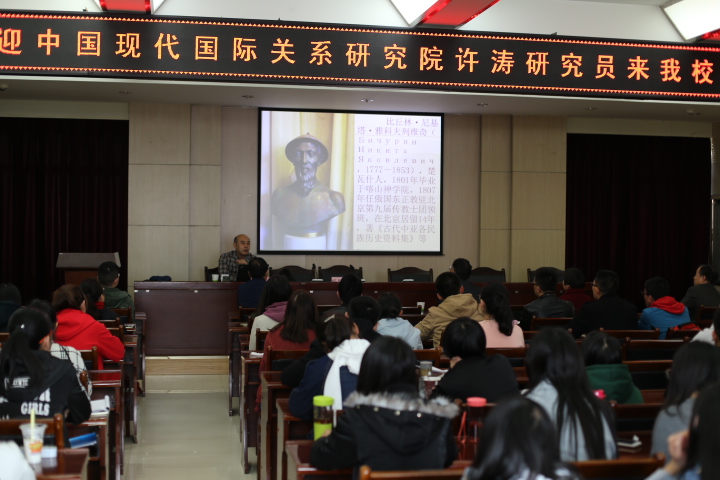 2017年10月30日,应英国上市公司365邀请,中国现代国际关系研究院许涛研究员在10号楼D区四楼多功能报告厅作了题为《中亚学概论暨中国中亚问题研究现状》的学术报告。报告由杨鹏飞院长主持,英国365官网师生100余人参加了此次报告。