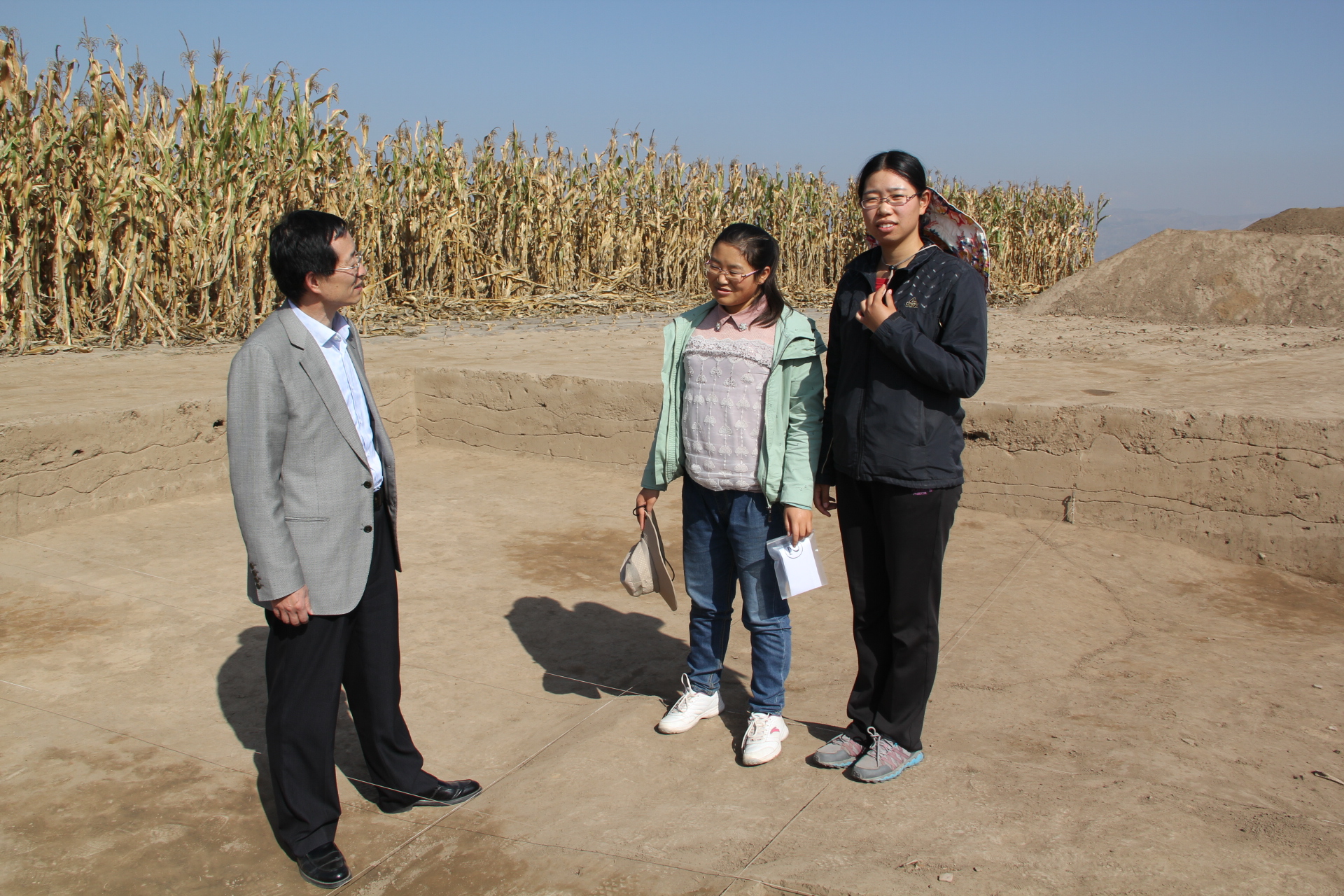 9月28日,刘老师专程来到临洮县中国社会科学院考古所马家窑文化遗址发掘现场,看望参加考古发掘的英国365官网考古学专业的王丽华、傅悦、马丁三位同学。期间,刘老师与中国社会科学院考古所外国考古研究中心主任李新伟研究员、中国社会科学院考古所马家窑文化遗址发掘现场负责人郭志委博士就双方合作做了进一步的商讨。
