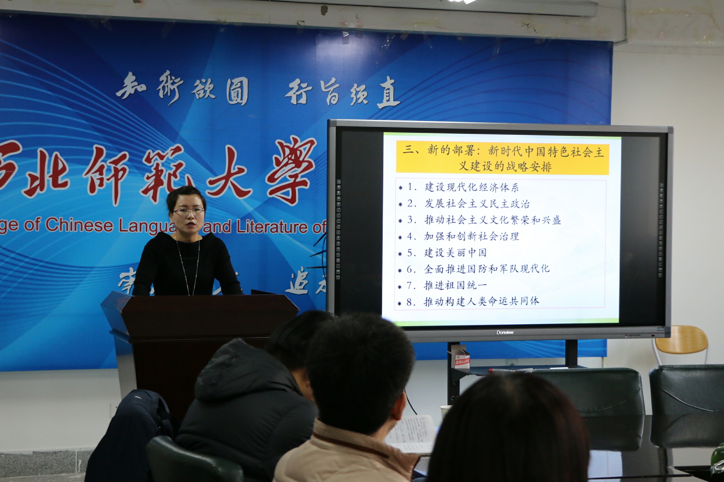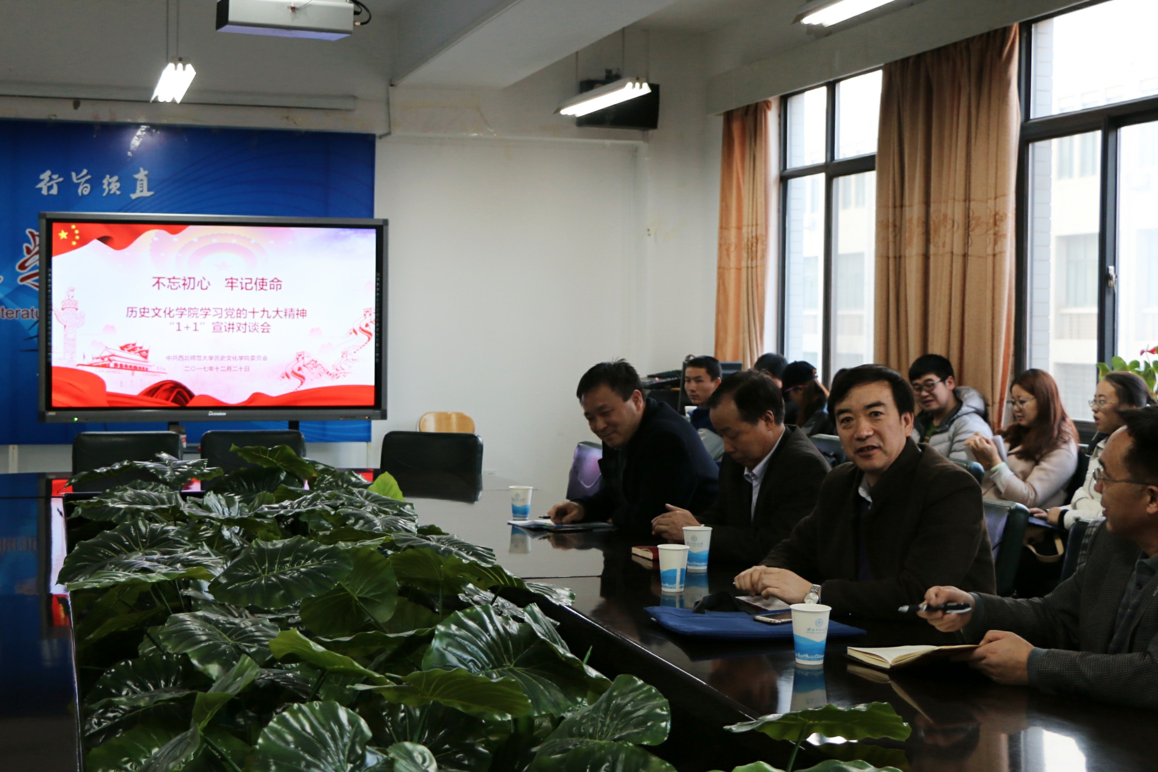 根据学校党委关于深入学习十九大精神的部署,12月20日下午,由学校党委常委、副校长田澍教授和马克思主义学院刘瑞兰老师组成的学习十九大精神“1+1”宣讲对谈小组进入英国365官网,面向英国365官网全体教职工党员以及学生党员进行了十九大精神宣讲与对谈。