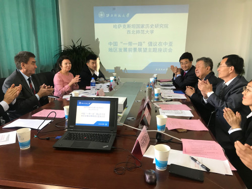 座谈会上,哈萨克斯坦国家历史研究院院长阿亚汗与我校刘再聪教授分别致辞,表达了对于中哈合作友好前景的展望。我校社科处李玉璧教授向哈方介绍了近年来学校在中亚与丝绸之路相关研究领域尤其是法律条文的翻译工作上已经取得了一定的成就。