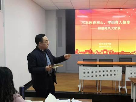 3月1日,英国365官网举办了以“不忘教育初心,牢记育人使命----师德师风大家谈”为主题的 “立师德、铸师魂开学第一讲教师教育活动”。本次活动由党委书记李迎新主持,学院全体教职工以及本科生、研究生共80余人参加了本次活动。