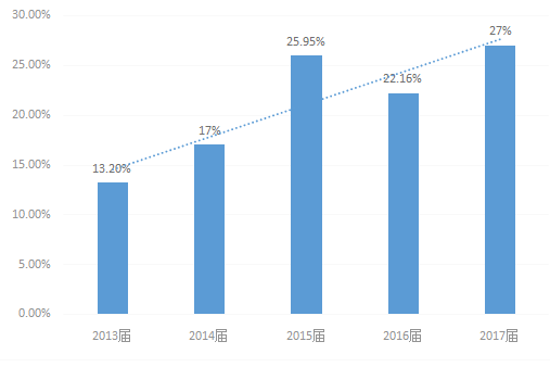 近年来,学院突出历史学专业人才的“长线培养”特征,积极引导本科生坚定专业学习方向,自2013年以来,学院保研、考研率保持了稳步攀升,分别达到13.20%(2013年)、17%(2014年)、25.95%(2015年)、22.16%(2016年)和27%(2017年)。这其中,95%以上的录取硕士生均进入教育部部属6所师范类高校、国家“985”工程高校,中国社会科学院、香港中文大学等高水平大学及研究机构。