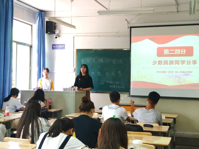 2019年5月24日,2018级历史学3班在教学三号楼206教室开展了主题为“中华民族一家亲,同心共筑中国梦”的主题团日活动。在活动中,同学们深入学习了习近平总书记关于民族团结的重要论述。通过学习,同学们认识到要像爱护自己的眼睛一样爱护民族团结,像珍视自己的生命一样珍视民族团结,像石榴籽那样紧紧抱在一起。