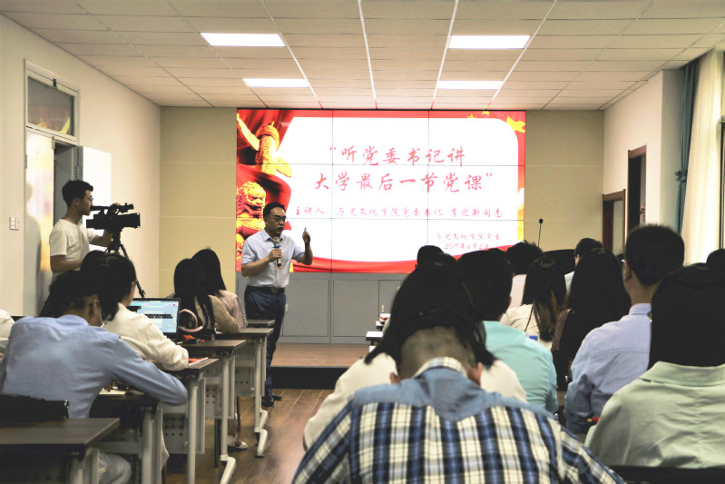 6月2日晚,英国365官网党委书记李迎新在教学七号楼317会议室给2019届毕业生党员上了大学最后一节党课。