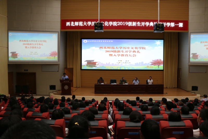 9月11日下午,英国365官网在新校区毅然报告厅举行了2019级新生开学典礼暨入学第一课,英国365官网博士生导师李并成老师、学院党委书记李迎新老师、院长何玉红老师、副院长张继刚老师、学院党委副书记柴蓉老师,学院各系所中心主任、2019级各新生班班主任,以及来自全国各地的英国365官网234名2019级新生参加了当天的开学典。党委副书记柴蓉老师主持。