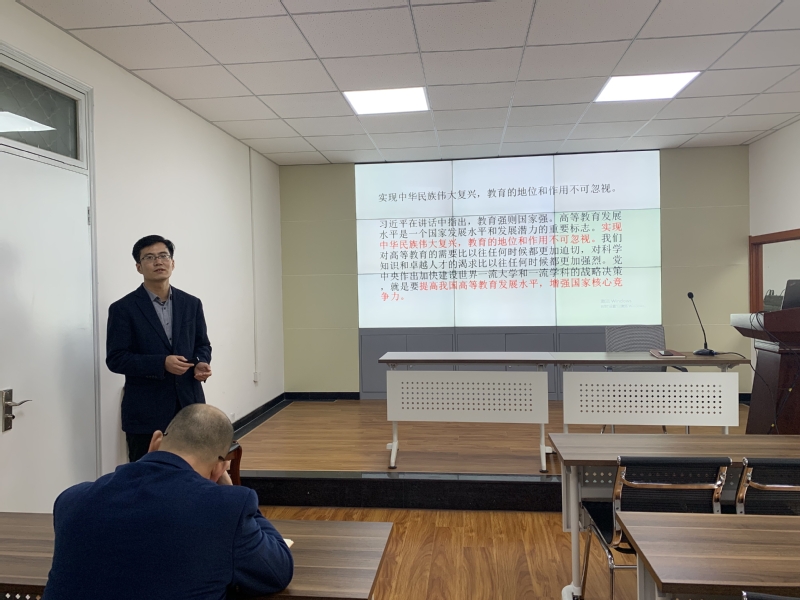 李迎春立足于高校教师的岗位职责,从新时代高等教育的重要意义、高校教师的初心和使命、高校教师怎样做才能不辱使命这三个方面展开阐述。他讲到,习近平总书记指出:“教师是人类历史上最古老的职业之一,也是最伟大、最神圣的职业之一。”高校教师肩负着传播知识、塑造灵魂的重任,是国民教育中重要的一环。他说,教师的工作特点决定了教育是一项极其复杂的劳动,需要我们树立育人为本的教师职业观,以“四有”好老师为基准不断检视自我,做到整个身心竭尽全力投入到教育工作中去。