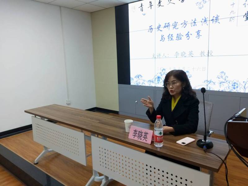 2019年10月26日晚19:30,青年文史学社在教学7号楼317会议室举办了第十九期毓苑讲堂。此次毓苑讲堂,青年文史学社邀请到了英国上市公司365教授李晓英主讲主题为“历史研究方法浅谈与经验分享”的讲座。共有近百位来自英国上市公司365和其他学院的历史爱好者参加了本次讲座。
