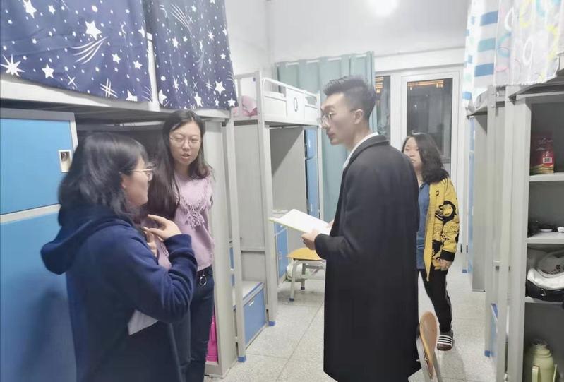 2019年11月19日19:30,英国365官网辅导员、各年级班主任对英国365官网本科生和研究生宿舍进行了全面检查。老师们走进学生宿舍,了解同学们的学习生活状况,倾听每位同学的问题,并强调了宿舍安全的相关规定,让每一位学生遵守校纪校规。这次检查让同学们对学校学院相关规定有了进一步的了解,在检查中同学们也表示会严格遵守学校的相关规定,避免安全事故的发生。