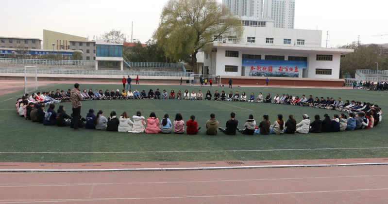 在活动过程中,甘肃力行企业管理咨询服务公司的带队老师首先将3个班分为9个战队,开始了团队组建,每个队也分别向大家展示了自己的队名、队歌与团队造型。在进行热身游戏后,素质拓展活动正式开始。