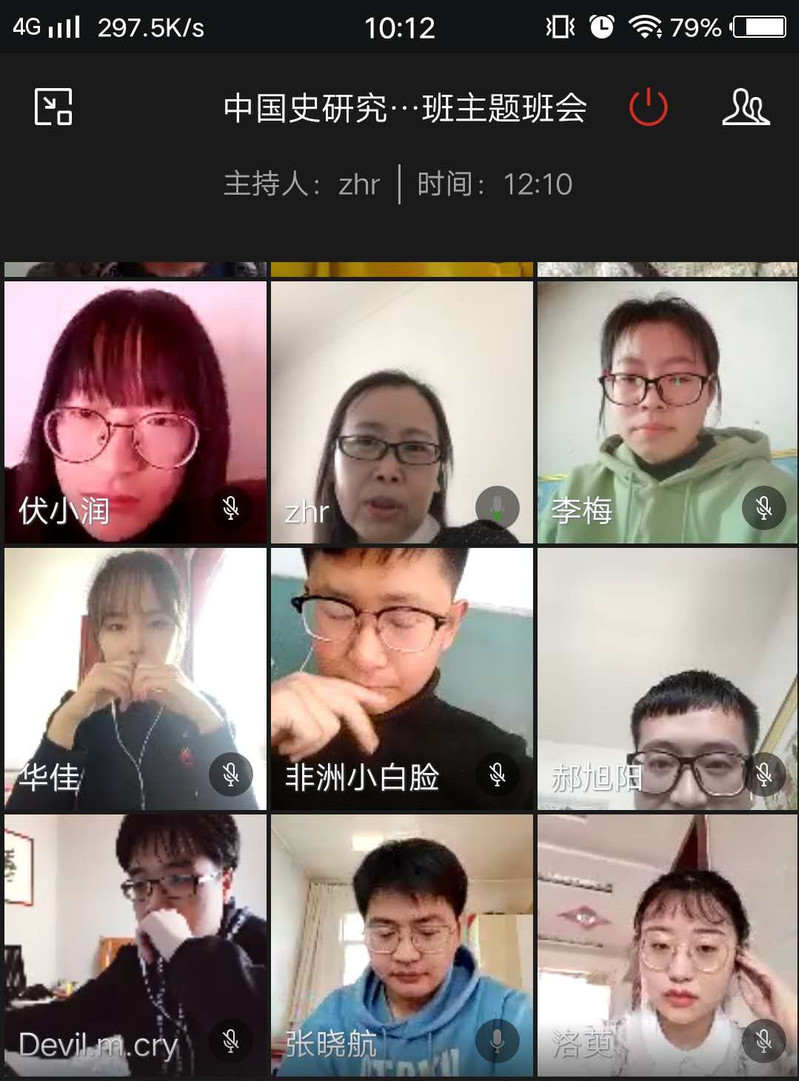 在毕业年级的主题班会中,各毕业班班主任老师和同学还围绕研究生复试、毕业论文答辩、就业求职等毕业生关心的话题进行了重点的讨论。在讨论的过程中,班主任老师们围绕求职、研究生复试准备都给予了积极的建议。2016级历史学1班张荣老师嘱咐同学们在求职过程中,要积极主动联系用人单位,积极就业。中国史(唐后班)班主任老师张嵘,询问了毕业年级各位同学的论文修改情况,并就网上进行预答辩的相关事宜,和同学们交流了看法。同时,为了保证后期线上预答辩的顺利进行,张嵘老师还与研究生一起,对企业微信、QQ群等视频软件进行了预答辩模拟。