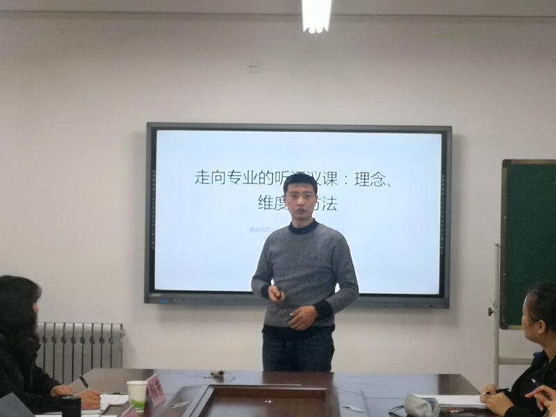 评课结束后,苏向荣老师做了“听评议”课的主题报告。苏老师分别从学生学习、教师教学、课程内容、课堂文化四个维度给我们讲述了听课、评课、议课的重点内容,并以“教师阅读的边界就是课堂教学的边界”这句话来勉励同学们,希望大家今后作为一名老师既要有理论的高度、视野的广度,更要有课堂教学的开放度。苏老师扎实的专业知识和幽默风趣的语言给了同学们许多启发,使同学们对教师这一职业有了更深的理解和向往。