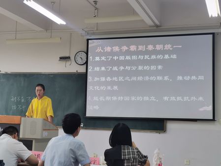 十位参加比赛的选手讲课的主题分别是:陈志逸《古代的经济政策——“重农抑商”》、田文《发达的古代农业》、张昀霜《百家争鸣》、张晶《罢黜百家,独尊儒术》、郑宇豪《秦朝的统一》、李学理《宋朝的科举制度》、白天涯《明清之际活跃的儒家思想》、杨秀玲《古代手工业的进步》、张仲涛《古代商业的发展》、唐智豪《古代的经济政策——“海禁”与“闭关锁国”》。十位选手围绕人教版高中历史教材,按照课程内容的脉络和体系来讲述历史知识,用鲜活而生动的教学方法打动着在场的观众。在点评环节,评委老师指出:“这次比赛是十分有意义的,学生们站在讲台上自信满满的讲好一节历史课,老师们感到十分欣慰。选手的表现让老师们看到了同学们的勇气和朝气,同学们扎实的基本功,讲授思路清晰,方式方法新颖。长江后浪推前浪,相信在以后的教学实践中大家会越来越好。同时,老师也指出,有些同学的讲课环节需要注意,如有部分选手还存在语速过快、PPT字体大小等细节问题,这需要大家在以后的讲课中继续改进。”
