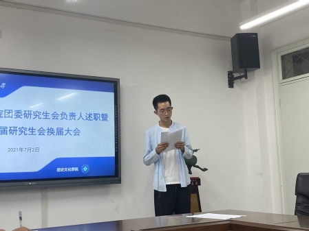 首先,会议第一项议程是由我院第十届研究生会负责人和各部门负责人分别对上一学年研究生会工作进行汇报。总结一年来在学校、学院党委和团委领导下,研究生会协助学院研究生各党支部、班级有序开展各项工作,充分发挥了纽带、服务作用,坚持从同学中来、到同学中去,努力为英国365官网全体研究生作贡献。
