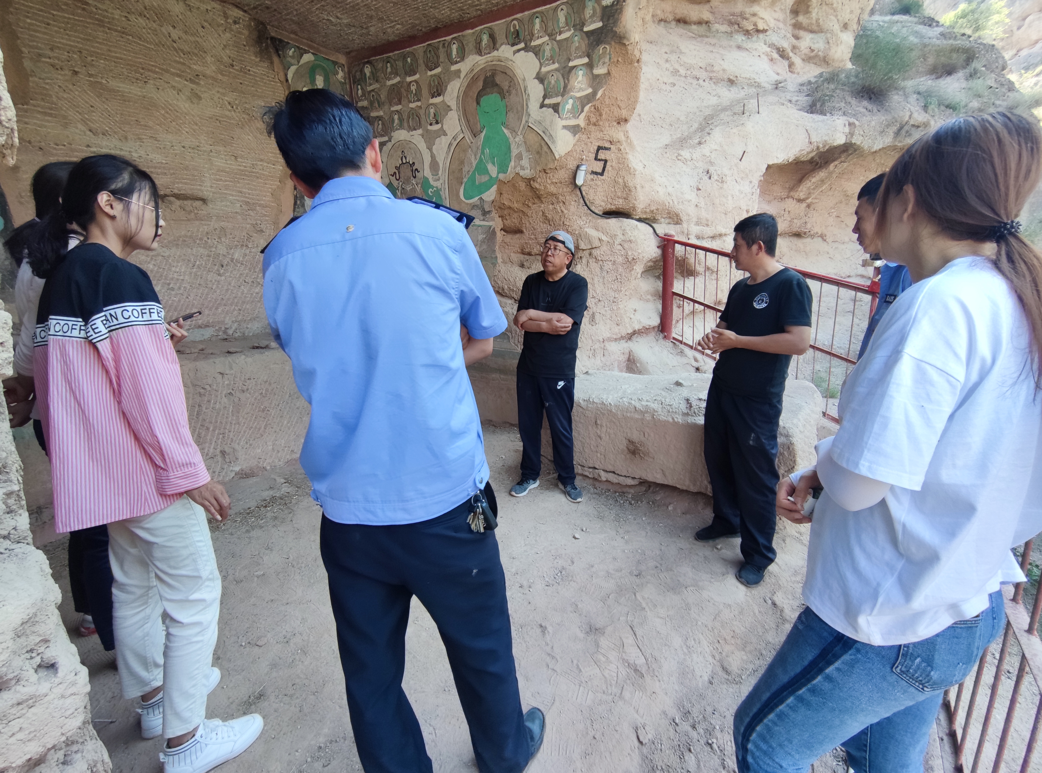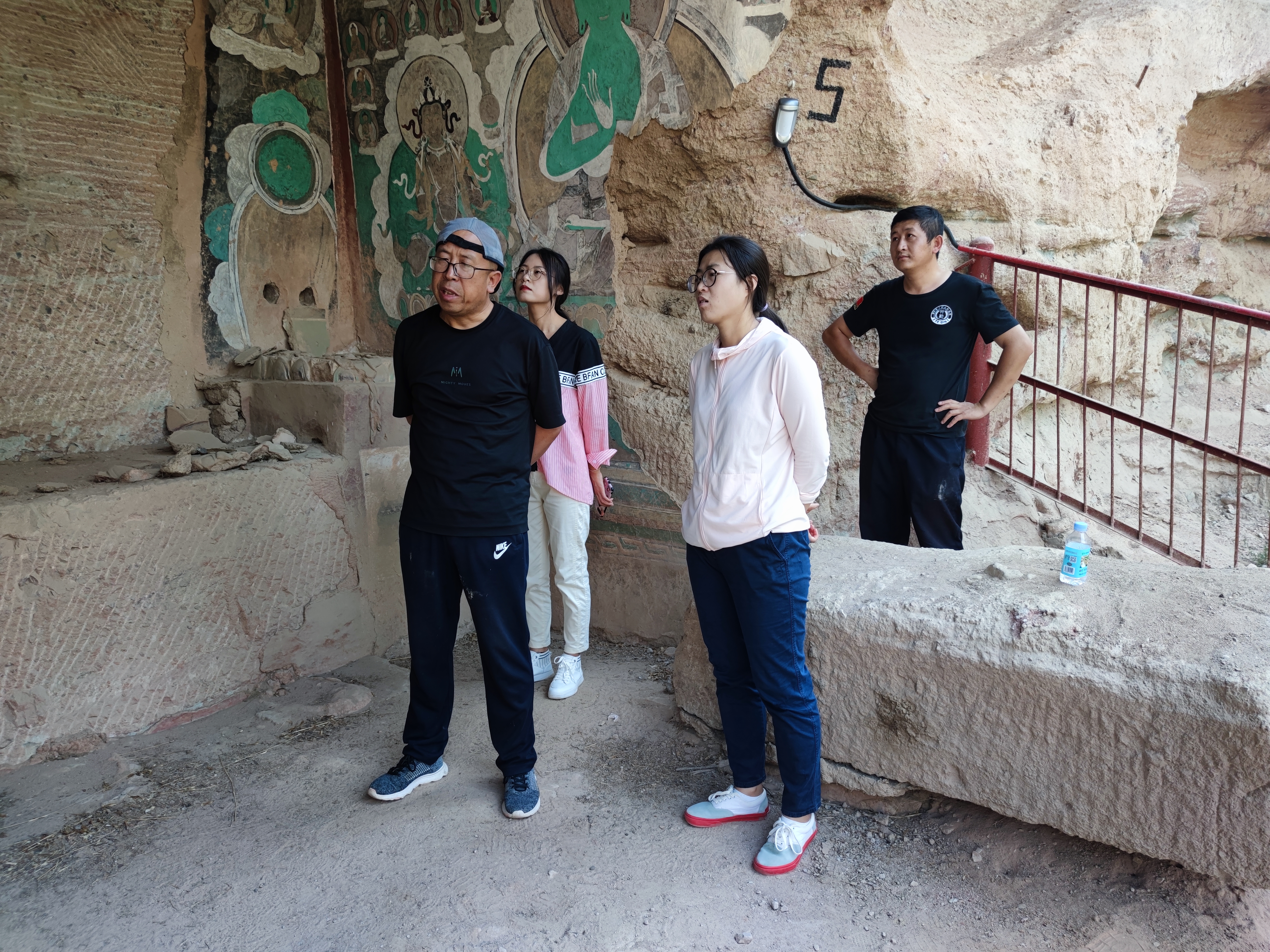 2021年7月8日,炳灵寺文物保护研究所副所长曹学文带领英国365官网文物与博物馆专业的研究生们,前去炳灵寺石窟上寺区进行调研并做了《炳灵寺上寺区石窟壁画艺术》的专题报告。