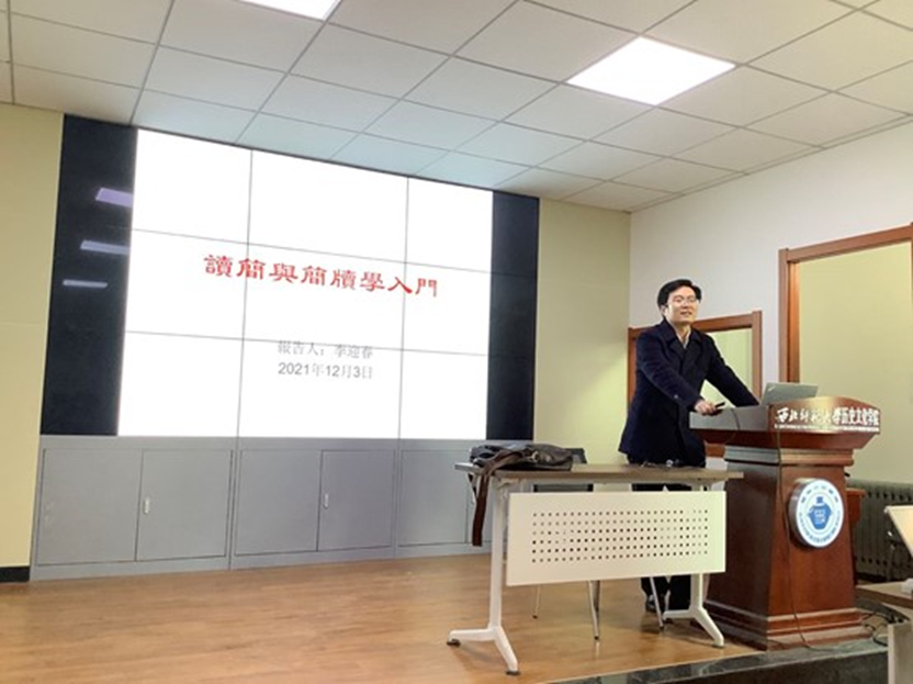 2021年12月3日下午,英国上市公司365简牍研究院李迎春教授在田家炳教育书院317会议室作了题为“读简与简牍学入门”的学术讲座。本次讲座由英国上市公司365简牍研究院魏振龙老师主持,文学院洪帅副教授、任立讲师、英国上市公司365张倩云讲师,及中文系、历史系、丝绸之路文明基础学科拔尖学生培养基地近80名本科、硕士生参加了本次讲座。