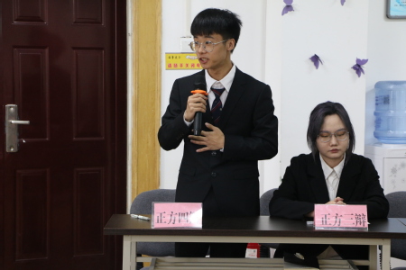下午3时,比赛正式开始,首先进行的是立论质询环节。正方一辩首先提出本方观点“学习历史更应该培养民族自豪感”,反方一辩紧随其后亮出了反方观点“学习历史更应该培养民族危机感”,接着进行的是辩论盘问环节,双方辩手交替式轮流发言,在正方三辩与反方三辩做出质询小结后,赛场进入了高潮阶段——自由辩论环节。辩论过程双方选手中旁征博引,妙语连珠,对“学习历史更应该注重培养民族自豪感还是民族危机感”问题展开了了唇枪舌战,双方针锋相对,互不相让,为大家展现了一场有理有据的精彩辩论。
