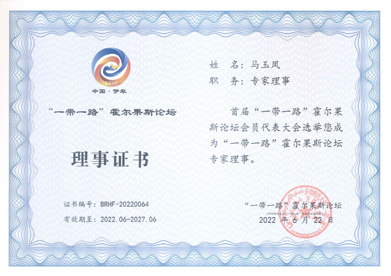 论坛上马玉凤提交了《以“四好”关系为基础,着力打造中国—中亚命运共同体》论文并发言,指出中国与中亚国家建交30周年以来,确立了“好邻居、好伙伴、好朋友、好兄弟”的新型关系。近年来,在元首外交战略的引领下,双方关系步入高度互信的新时代,以“四好”关系为基础,着力构建中国与中亚命运共同体,将会是各国高质量共建“一带一路”,巩固“一带一路”建设新成果的大势所趋。