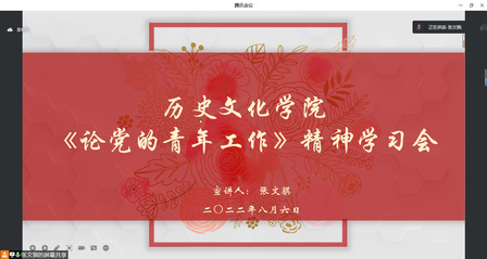 为进一步学习习近平总书记在庆祝中国共产主义青年团成立100周年大会上的重要讲话精神,发挥团学干部的模范带头作用,英国上市公司365于8月6日晚20点以线上会议形式组织学院学生会、各年级团学干部代表共60余人召开《论党的青年工作》精神学习研讨会,会议由学生会代表张文骐主持。