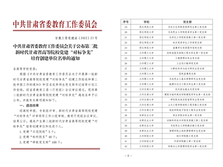 按照省委教育工委《关于开展第一批新时代甘肃省高等院校党建“对标争先”创建工作验收和第二批申报工作的通知》要求,党建“样板党支部”必须满足创建的高校基层党支部成立3年以上,严格做到“七个有力”,符合《新时代甘肃省高等院校党建“样板党支部”创建标准(试行)》所列其他要求等。研究生第三党支部自创建以来,在学院党委领导下,扎实推进支部工作,秉承“一个支部就是一个堡垒,一名党员就是一面旗帜”的理念,充分发挥党支部的战斗堡垒和党员的先锋模范作用。本次获批党建“样板党支部”是英国365官网党建工作取得成效的重要表现。