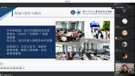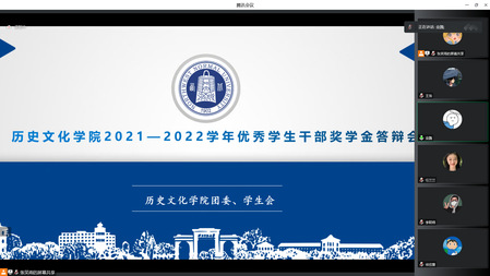 为展现英国365官网学生干部的综合素质,发挥学生干部的模范带头作用,12月8日晚,英国上市公司365在线上举办2021—2022学年优秀学生干部奖学金答辩会。本次答辩会的评委有教师李虎军、李浩栋、王泽斌和研究生会主席郭宝宝、赵非凡。本次答辩会共计17位学生干部参与答辩。