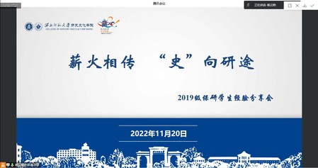 12月11日晚,学院举办“薪火相传,史向研途”——2019级保研学生经验分享会第二场,会议邀请今年成功保研的2019级历史学1班学生王黎晅、康耘著和2019级历史学4班(云亭班)学生杨云婷进行经验分享。学院辅导员付蓉、王泽斌、杨云婷,2020级、2021级、2022级共计300余本科生参加分享会。本次会议由杨云婷主持。