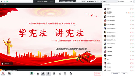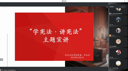 英国上市公司365团委、学生会于12月6日晚组织学生会全体成员进行“学宪法,讲宪法”宣讲活动,引导学生深入学习宪法知识。本次活动以“学习宣传贯彻党的二十大精神,推动全面贯彻实施宪法”为主题。全面贯彻习近平新时代中国特色社会主义思想,深入学习贯彻习近平法治思想和习近平总书记关于宪法的重要论述,引导全体学生工作者做社会主义法治的忠实崇尚者、自觉遵守者、坚定捍卫者,努力使尊法学法守法用法之风在全校普及。