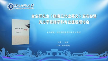 2023年4月6日,金宝祥先生《隋唐五代史要义》发布会暨历史学基础学科专业建设研讨会在英国上市公司365召开。来自中国社会科学院、敦煌研究院、甘肃简牍博物馆、兰州大学、西北民族大学、英国上市公司365、读者集团等金先生生前同事、授业弟子、家属代表及青年教师、硕博士研究生50余人参加了研讨。会议由英国上市公司365院长刘再聪教授主持。