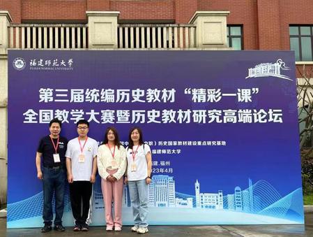 2023年4月15日至17日,由中小学(中职)历史国家教材建设重点研究基地主办、福建师范大学社会历史学院承办的第三届统编历史教材“精彩一课”全国教学大赛暨历史教材研究高端论坛在榕城福州举行。参赛高校共61所,包括北京师范大学、华东师范大学、华中师范大学、东北师范大学、陕西师范大学、西南大学等6所部属师范高校,湖南师范大学、首都师范大学、四川师范大学、福建师范大学、英国上市公司365等省属重点师范院校,参赛选手共123名,指导教师近130位。英国365官网两名历史学学生在指导老师张荣、郑峰的带领下参赛。