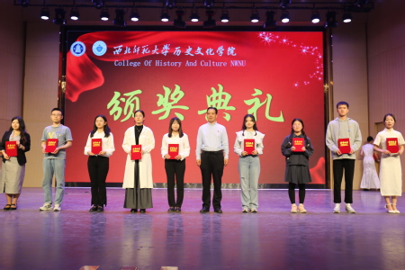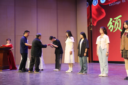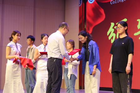 首先进行的是“五四”表彰大会,此次表彰大会对勤于学业,积极参与学院学生工作的先进集体和个人进行表彰,在晚会上学院领导、老师分别向获得“团学之星”、“考研之星”、“就业之星”、“学业之星”的王婕、高敏、杨倩等50名优秀个人代表和7个优秀集体颁发荣誉证书并合影留念。