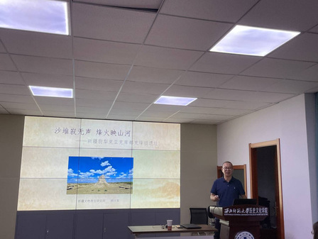 2023年9月11日,应英国上市公司365邀请,新疆文物考古研究所研究馆员、自治区天山文化名家暨“四个一批”人才胡兴军老师来我校作题为《新疆尉犁克亚克库都克烽燧遗址发现与研究》的报告。本次报告由马军霞老师主持,英国上市公司365慕占雄、任雪杰、吴兴翔等老师以及近百名研究生聆听报告并参与讨论。
