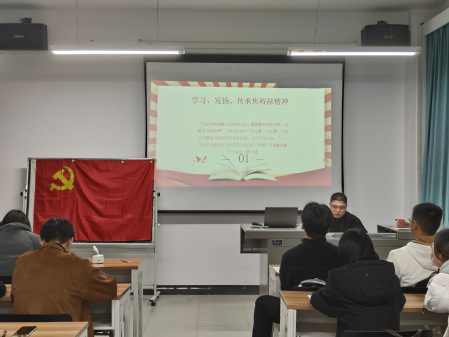 杨子昂首先介绍了焦裕禄的生平。焦裕禄幼年穷苦,后参加革命,并一直为革命和建设而奋斗。尤其是在兰考时期,焦裕禄为兰考的建设呕心沥血,最终不幸去世,终年42岁。其次,杨子昂介绍并讲解了焦裕禄精神的内涵:亲民爱民、艰苦奋斗、科学求实、迎难而上、无私奉献。最后,杨子昂引用习近平总书记关于学习焦裕禄精神的讲话,号召全体党员同志向焦裕禄同志学习,不忘初心,牢记使命,赓续红色血脉,传承红色基因,为社会主义现代化建设添砖加瓦。