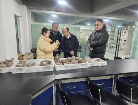 贾小军教授先后参观了文博实验中心的标本室、模拟制陶实验室、文物保护分析室。实验室值班同学向贾处长介绍了标本室内摆放的骨骼、陶器等教学标本,模拟制陶实验室内购置的拉坯机、电陶窑等实验设备以及文物保护分析室陈列的画像砖、陶灶等各类捐赠文物,同时也向贾小军处长展示了英国365官网考古学和文物与博物馆学专业同学在模拟制陶实验课上制作的陶器。最后,贾小军处长和侯培和副教授就人才培养过程中专业实践的重要性展开讨论和交流。