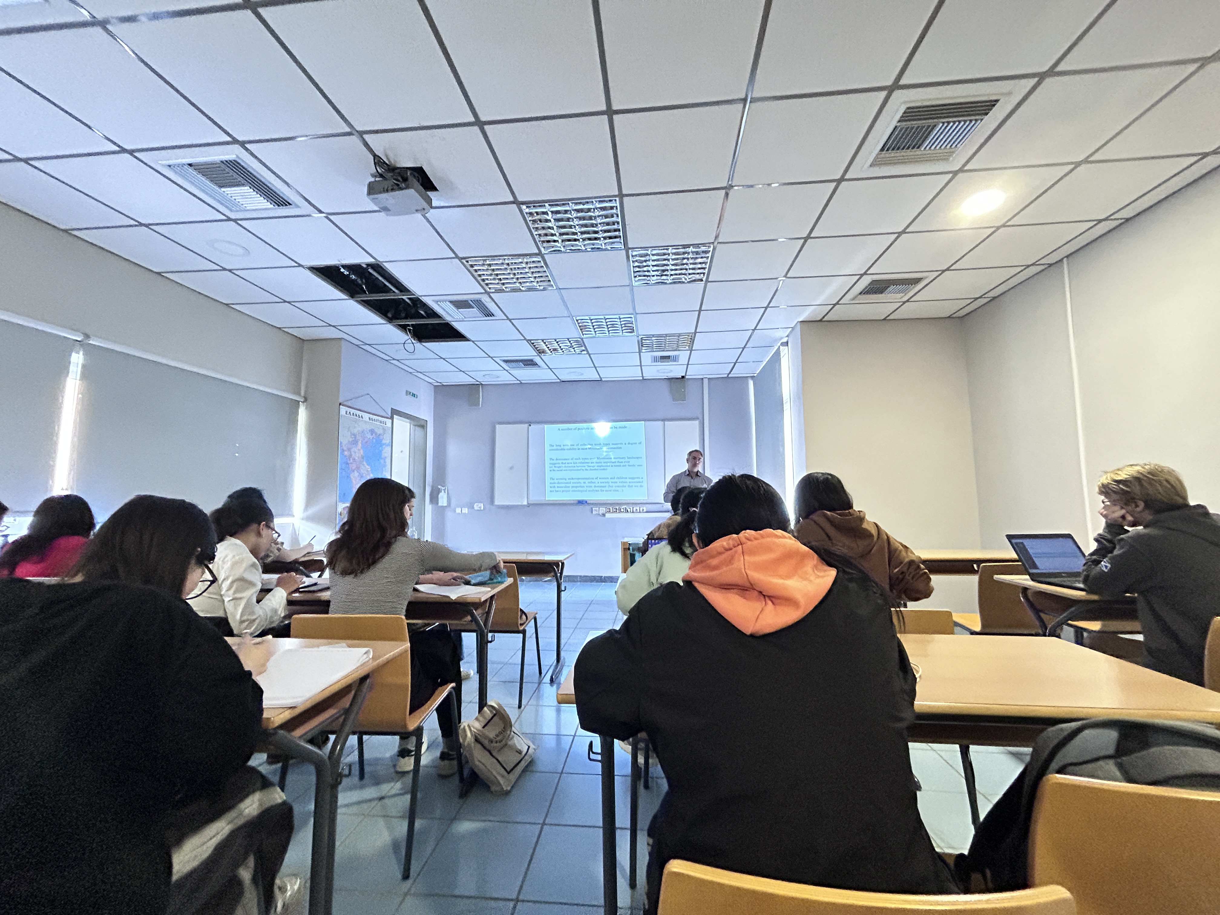 顺利抵达雅典大学后,雅典大学哲学学院悠久的历史、浓郁的学术氛围,《爱琴海文明》《迈锡尼考古学》《希腊城邦史》《古代希腊艺术史》等丰富的课程设置,令同学们感到异常充实。仅仅一节《迈锡尼考古学》的课程体验,令大家充分领略到迈锡尼文明在古希腊历史上的重要性和独特性,它的建筑、艺术和文字成就令人惊叹不已。而《荷马史诗》中关于迈锡尼的描述,更让大家对这个神秘而壮丽的古典文明充满想象。