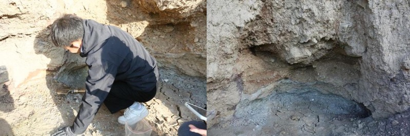 与此同时,考察团队成员围绕陶器的制作工艺展开了一系列调查,涉及到陶土的来源、陶器的制作方式及装饰等内容。尤其在二平台遗址发现了一处陶土原料矿坑,这对研究该遗址陶器制作原料就地取材提供了重要佐证。