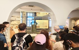 上午九时,师生们到达了考察第一站:纳夫普利翁(Nafplio)博物馆。该馆展示了来自阿尔戈利斯南部各地从旧石器时代到罗马时代的文物。在Vassilis Petrakis教授的带领和讲解下,同学们初步了解了包括陶器、雕塑、青铜器等重要文物。