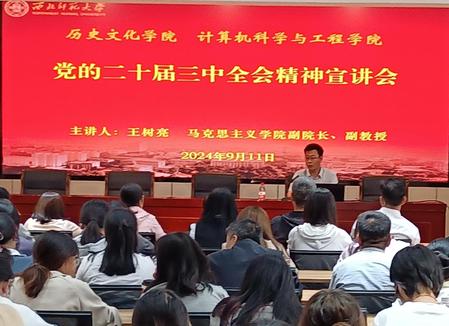 王树亮老师从深入学习习近平总书记重要讲话精神、全面准确理解《决定》提出的重大举措、全力以赴抓好全会精神贯彻落实等方面对党的二十届三中全会精神进行了阐释、解读、宣讲。他强调,党的二十届三中全会是在以中国式现代化全面推进强国建设、民族复兴伟业的关键时期召开的一次重要会议,是党的历史上又一重要纲领性文件。他讲到,学习宣传贯彻党的二十届三中全会精神,要把学习贯彻全会精神同学习领会习近平总书记关于全面深化改革的一系列新思想、新观点、新论断结合和贯通起来,要加强党对进一步全面深化改革全过程的领导,要以钉钉子精神抓好各项改革任务的落实。
