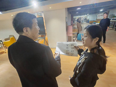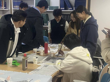 临摹环节,傅老师耐心地一一解答同学们的问题,并现场指导了同学们的书法作品。他鼓励同学们要热爱书法,多加练习,传承和发扬书法文化,现场交流氛围浓厚。
